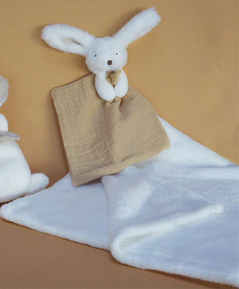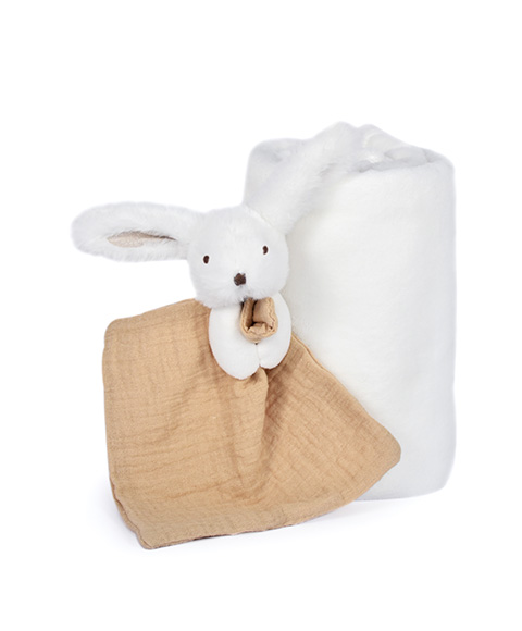 Muchláček králíček a plyšová měkká dečka byly navrženy tak, aby uklidňovaly miminko, byly pohodlné a ochranné. Praktická sada, která Vás nezklame doma ani na procházce. Díky jemným harmoniím trendy barev, směsím velmi jemných materiálů bude tato sada pro miminka velmi příjemná. Ideální také jako dárek. Údržba: Perte v lázni na 30°. Přirozené nebo nízkoteplotní sušení. Hlavní vlastnosti: měkký plyš, prémiový materiálv souladu s evropskými normami CEvhodné od narození