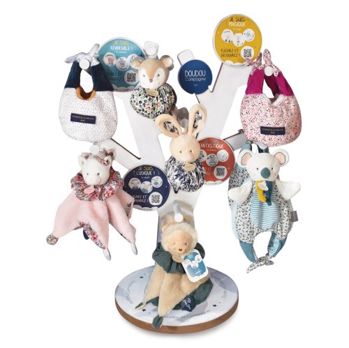 Displej k zavěšení hraček ve tvaru stromu ve velikosti 80 cm pro maximálně 40 ks hraček. Hračky nejsou součástí displeje. Při objednání plně vybaveného displeje hračkami Doudou je dodání tohoto displeje zdarma.