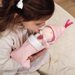 Cena uvedená za 1 ks. S těmito miminky bude skvělá zábava. Jsou dobře zabalené v pohodlných přikrývkách, které ladí s jejich pyžamkem (s květinovým potiskem, pro odstíny fialové a tmavě růžové). Každá panenka drží v ruce malou lahvičku a lze ji používat nezávisle na přikrývce. Tato přikrývka a její miminko nabízejí skvělé chvíle hry a umožňuje dětem starat se o miminko "jako dospělí". Údržba: Perte v lázni na 30°. Přirozené nebo nízkoteplotní sušení. Hlavní vlastnosti: měkký plyš, prémiový materiálmalý formát vhodný pro novorozencev souladu s evropskými normami CEvhodné od narození