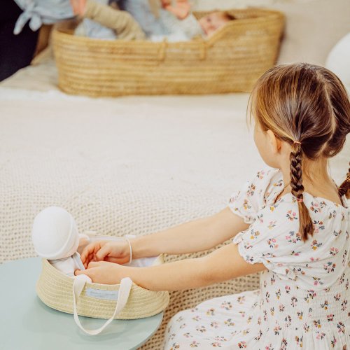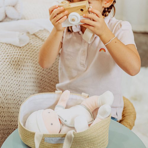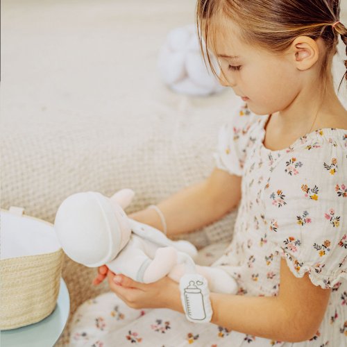 Panenka Pol v přenosné tašce do kočárku jako opravdové miminko! Tato panenka s čepičkou a ponožkami je měkoučká a heboučká pro každé ručky. Pol má navíc bílo-šedý obleček, který je možný panence sundávat a zase oblékat a v ruce drží svou malou lahvičku. Díky přenosné kočárkové tašce je panenka Pol skvělou parťačkou nejen na doma, ale i na výlet do parku či k přátelům. S toutou panenkou jsou hodiny hraní zajištěny. Údržba: Perte v lázni na 30°. Doporučení: Přirozené nebo nízkoteplotní sušení. Hračka splňuje evropské bezpečností CE normy. Hlavní vlastnosti: vhodné od narozenívyšívaný obličej, oči i ústasladké miminko s doplňky