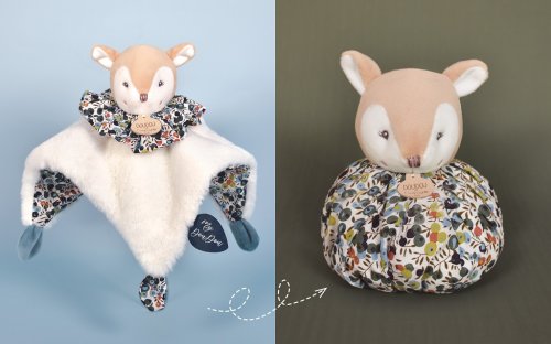 Skutečně pohodlná, měkká hračka, která se promění v heboučkou přikrývku, nebo v plyšový míč na hraní. Tento praktický muchláček je vhodný na hraní doma nebo i při procházce. Pro miminko bude mít především uklidňující efekt. Díky jemným harmoniím trendy barev a směsím velmi jemných materiálů bude tato srnka ideálním a lákavým společníkem. Údržba: Perte v lázni na 30°. Přirozené nebo nízkoteplotní sušení. Hlavní vlastnosti: měkký plyš, prémiový materiálexkluzivní a inovativní konceptv souladu s evropskými normami CE3v1 - hračka, přikrývka, míčekideální jako dárek k narození miminka