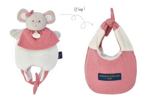 Myška, muchláček 30cm se dá proměnit v pěknou taštičku, která myšku uschová. Praktická hračka na hraní doma, nebo procházku. Pro miminko bude mít především uklidňující efekt. Díky jemným harmoniím trendy barev, směsím velmi jemných materiálů bude tato sada lákat malé i větší děti. Ideální také jako dárek. Stimuluje představivost. Údržba: Perte v lázni na 30°. Přirozené nebo nízkoteplotní sušení. Hlavní vlastnosti: exkluzivní a inovativní koncept v souladu s evropskými normami CE3 v 1 hračka, taška, lehká přikrývka