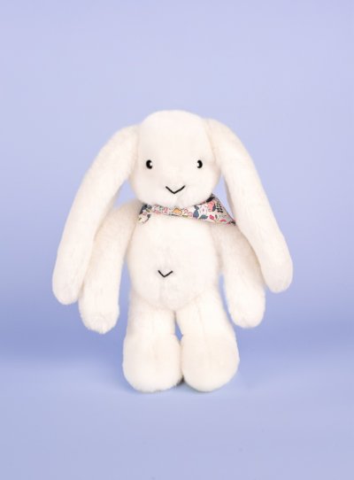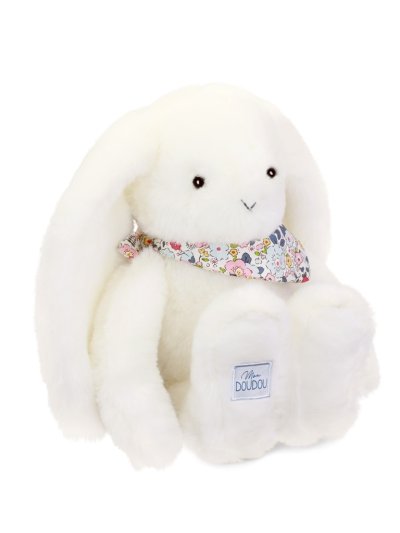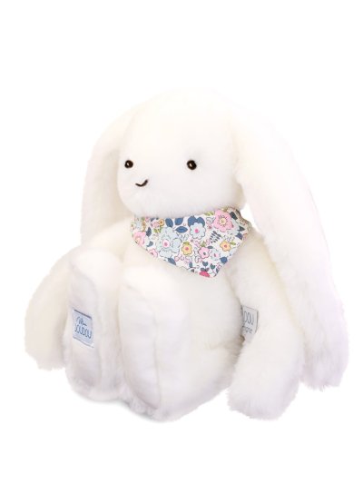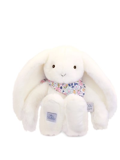 Heboučký bílý králíček o velikosti 35 cm s květovaným šátkem má přátelský obličej, dlouhá ouška a doprovází miminko od narození po celé dětství, aby mu přinesl pocit pohodlí a bezpečí. Díky barevnému provedení v jemných barvách a prémiovému hebkému materiálu vybízí k tulení a muchlání a dítě zabaví i uklidní. Přispívá k rozvoji smyslového vnímání, jemné motoriky a je roztomilým pomocníkem pro klidné usínání. Ideální dárek pro jakoukoliv příležitost. ÚdržbaPerte v lázni na 30°. Přirozené nebo nízkoteplotní sušení. Hlavní vlastnosti: rozvíjí smyslové vnímání a jemnou motorikuměkký plyš, prémiový materiálv souladu s evropskými normami CEvhodné od narozeníideální jako dárek