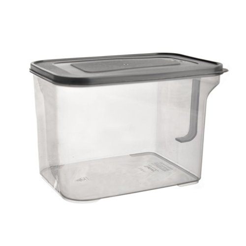 Zásobnice na potraviny s víčkem a s držadlem. Pohodlně a přehledně uloží mouku, cukr, sůl, krupici… Díky uchu je velmi pohodlná na manipulaci. Víčko zabrání rozsypání, zvlhnutí, přejímání vůní a chutí z ostatních potravin uložených ve skříňce. Díky transparentnosti máte na první pohled přehled o obsahu zásobnice. Díky tvarovanému víčku dobře stohovatelné. Materiál PP plast. Odolná teplotám od -25 °C do +95 °C. Objem 3.25 litru, 23 x 16 x 15 cm. Vhodná do myčky na nádobí, bez víčka také do MVT. EAN 8694917006136