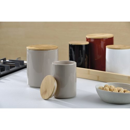 Úložné dózy Cady jsou vyrobeny z keramiky a mají krásné bambusové víko se silikonovým kroužkem. Tato varianta je světle šedá verze o objemu 1,7 l. Plechovka sluší nejen organizačním a skladovacím účelům. Plechovka je také zvýrazněním pro selektivní akcenty nebo jako dekorativní prvek. Výška 17,5 cm, 14 cm.Keramika s bambusovým víkem 17,5 cm v, 14 cm , 1,7L