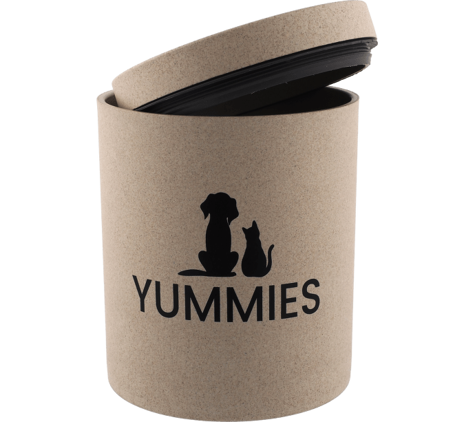 Stylová dóza na krmivo nebo pamlsky s přírodním vzhledem. Udrží obsah čerstvý a chráněný před vlhkostí či nečistotami a zároveň zapadne do každého interiéru. Díky pevnému víku je ideální pro každodenní používání a ekologický, odolný materiál zaručuje dlouhou životnost.