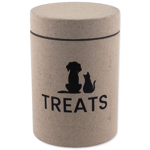 Stylová dóza na krmivo nebo pamlsky s přírodním vzhledem. Udrží obsah čerstvý a chráněný před vlhkostí či nečistotami a zároveň zapadne do každého interiéru. Díky pevnému víku je ideální pro každodenní používání a ekologický, odolný materiál zaručuje dlouhou životnost.