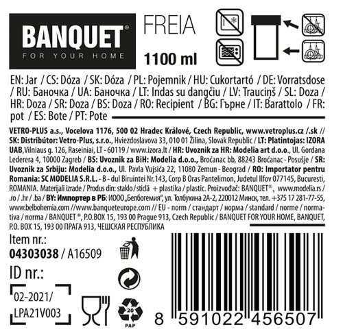 Skleněná dóza FREIA s víčkem, které prodlouží čerstvost skladovaných potravin. Díky kvalitnímu čirému sklu jsou potraviny snadno přehledné i bez otevírání a ponechají si déle svou chuť i aroma.