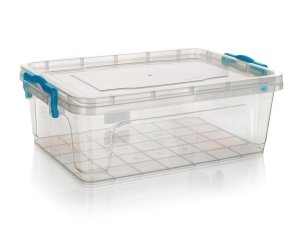 Dóza GEMA obdélníková 4 l, PH TRA / TYRK madla. objem: 4 l materiál: plast barva: transparentní box, tyrkysová madla Dóza GEMA s tyrkysovými madly má široké využití v kuchyni.