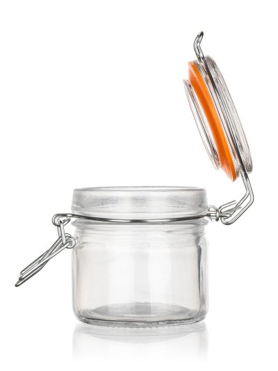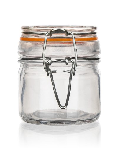 objem: 100 ml průměr: 6 cm výška: 7,7 cm materiál: sklo barva těsnění: oranžová