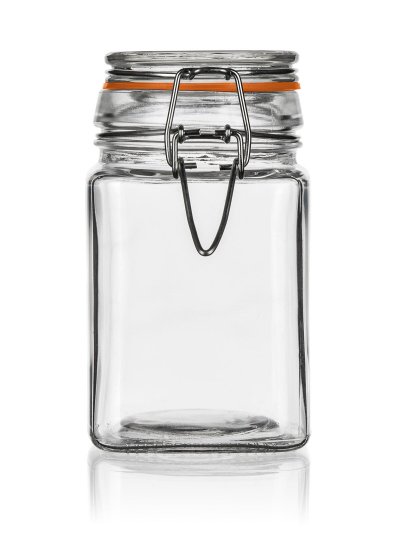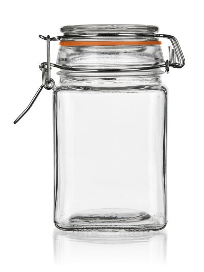 Dóza hermetická 260 ml, hranatá, skleněná, s patentním uzávěrem, LINA.
