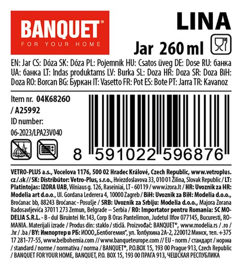 Nespornou výhodou skleněné dózy LINA je její použitelnost prakticky na všechny potraviny. Skleněná dóza má těsný hermetický uzávěr, je proto vhodná k uchování sušených či nakládaných potravin.