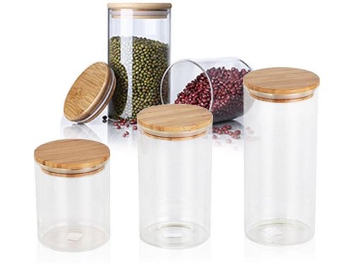 Skleněná kuchyňská dóza 1,3 l s bambusovým víčkem je ideální k uchování sypkých potravin.