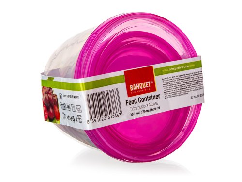 Sada plastových dóz ACASSA, ve třech velikostech 250 ml, 370 ml a 600 ml, je vhodná pro skladování potravin a hotových jídel. Dózy jsou vyrobené z odolného plastu a vhodné do myčky na nádobí, mrazáku i mikrovlnné trouby.