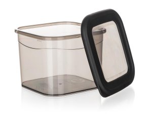 Plastová dóza LISSA s víčkem v kouřové barvě je vhodná k uskladnění potravin, např. rýže, těstovin, zavářky do polévky nebo cereálií.