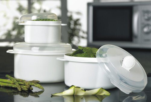Dóza do mikrovlnné trouby o objemu 1,5 l, bezpečná pro ohřev jídla v MW a pro další jeho uchovávání.