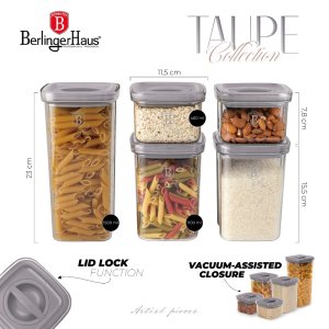 Přineste do své kuchyně eleganci a funkčnost s naší úložnou sadou z kolekce Taupe. Tato sada je navržena tak, aby poskytovala vynikající výkon a dlouhou životnost. Taupe barva dodává sadě moderní a stylový vzhled, který se hodí do každé kuchyně.