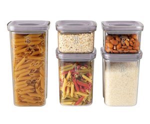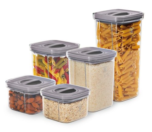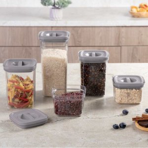 Úložná sada Taupe Collection 5+5 kusů je praktickým a stylovým řešením pro skladování v kuchyni. Plastové boxy jsou vybaveny vzduchotěsným systémem otevírání/zavírání víka, takže potraviny zůstávají čerstvé a nevytékají z obsahu. Průhledné plastové tělo umožňuje snadno vidět, co je v krabici, takže nemusíte hledat ve skříni nebo lednici. Sada obsahuje 2 úložné boxy o objemu 460 ml (11,2x11,2x8 cm), 2 úložné boxy o objemu 1100 ml (11,2x11,2x15 cm) a 1 úložný box o objemu 1500 ml (11,2x11,2x23 cm), takže je vhodný pro skladování potravin různých velikostí. Barva sestavy je taupe, což dodává kuchyni moderní a elegantní vzhled.