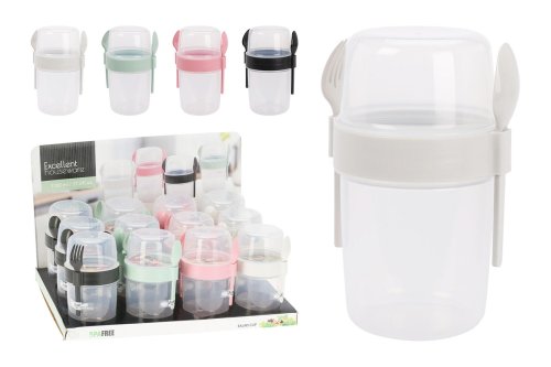 Dóza na salát + příbor, pro uchování čerstvých potravin, svačin, která je vyrobena z kvalitního plastu.