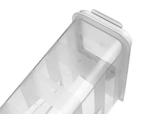 Transparentní dávkovací plastová dóza Culinaria s víčkem v bílé barvě. Dóza je praktickým pomocníkem na ukládání těstovin, luštěnin, mouky a jiných potravin. Opatřena měřící ryskou s odstupem 250 ml.