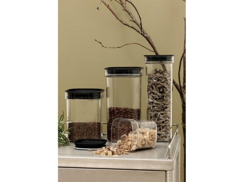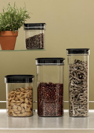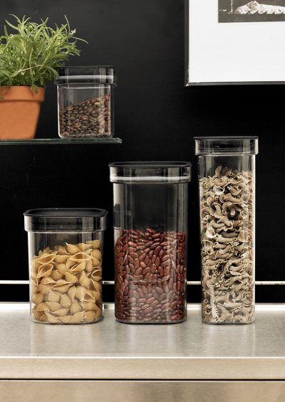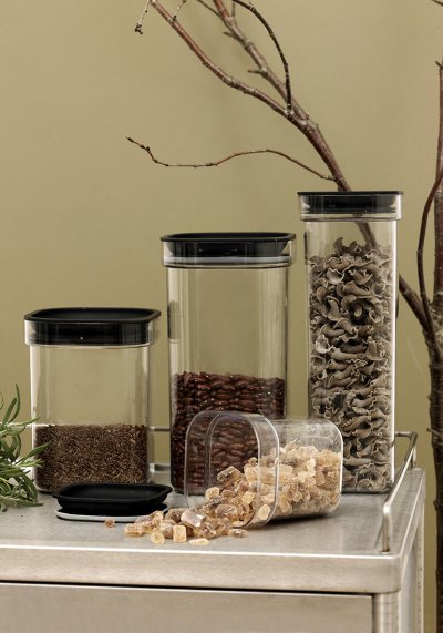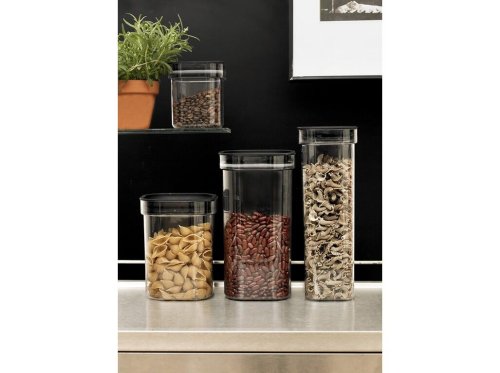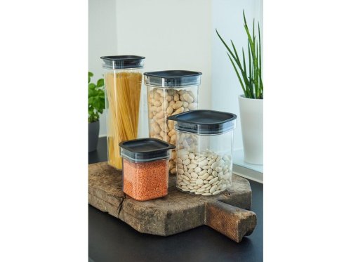 Moderní dóza se silikonovým těsněním je ideální pro hermetické skladování sypkých potravin, jako jsou luštěniny, rýže, cukr nebo mouka.