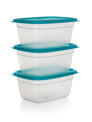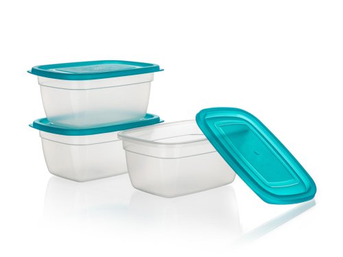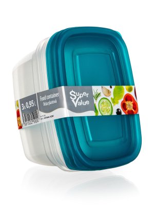 3dílná sada dóz na potraviny SUPER VALUE obsahuje 3 dózy o objemu 0,95 l, vhodné pro skladování různých potravin. Dózy jsou vyrobené z plastu a dodávají se s víky v tyrkysové barvě.