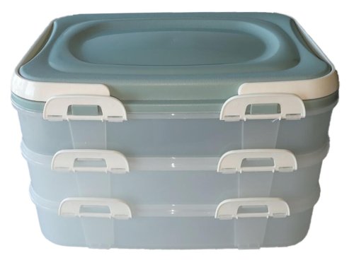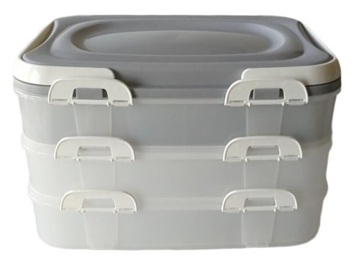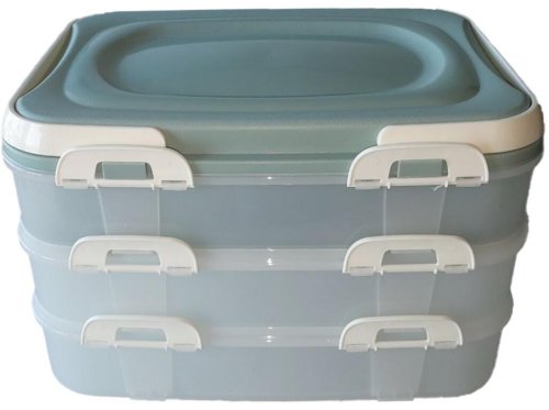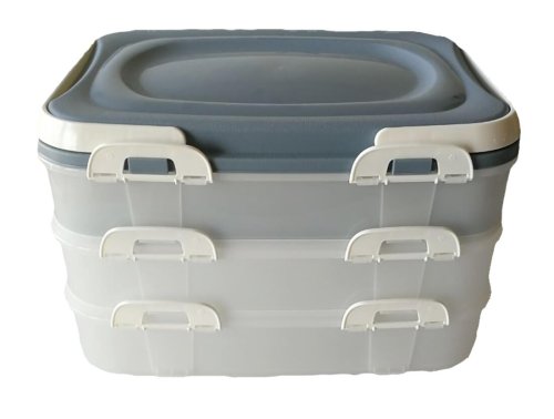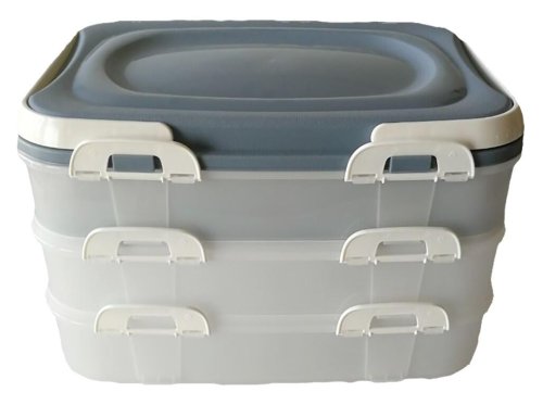 Plastová dóza PIKNIK s praktickými uchy, má 3 patra, vhodná pro skladování různých druhů potravin.