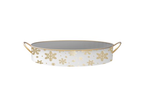 Dóza plechová 290x66mm kulatá s uchy vločka, bílá, zlatá