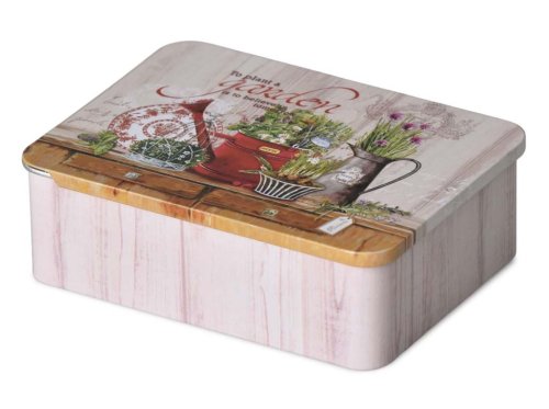 Dóza plechová mix barevná 120x90x35mm hranatá Garden je praktická plechová dóza s hranatým designem a květinovým motivem, ideální pro uchovávání drobností. Tato dekorativní dóza je skvělá pro různé použití v domácnosti. Její rozměry jsou 120x90x35mm.