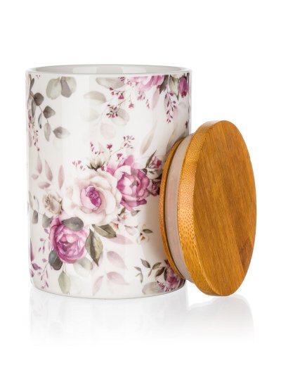Dóza pr.10x13cm, ROSE, keramická, s víkem dřev. průměr: 10 cm výška: 13 cm materiál: keramika dřevěné víčko Dóza s víkem ROSE s krásným květinovým vzorem se hodí k uchovávání potravin.