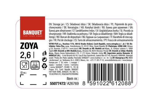 Plastová dóza ZOYA, s víčkem v kouřové barvě, je vhodná k uskladnění potravin, např. rýže, těstovin, zavářky do polévky nebo cereálií. Dózy je možno stohovat na sebe a tím ušetřit spoustu místa.