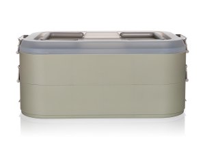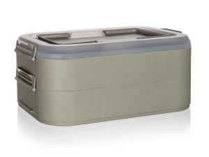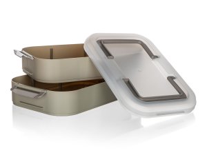 Party box s držadly je praktickým a atraktivním pomocníkem v přenášení a úschově jídla. Party box obsahuje 2 úložná patra v barvě latte a víko v transparentní barvě.
