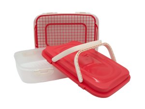 Součástí piknikového boxu je1 vnitřní mřížka s uchy pro snadné vyjímání obsahu boxu.