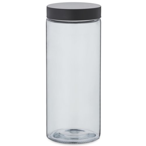 Pro větší pořádek při skladování: kulatá skleněná dóza se šroubovacím víčkem z nerezové oceli. Zásobník je vysoký 27 cm a má průměr 11 cm. Jeho objem je 2,1 l. Sklo/víko nerez matná černá, 11cm , 27cm v
