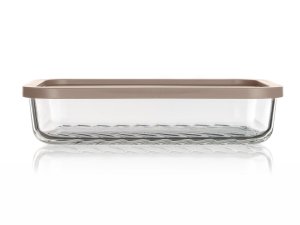 objem: 1,05 l rozměry: 22,5 x 16 x 5 cm materiál: skleněná dóza, plastové víčko barva víčka: latte teplotní rozpětí: min. -12 st. C, max. +220 st. C