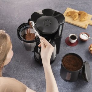 Dóza v originálním designu perfektně doplní vybavení každé kuchyně. Povrchová úprava zamezí jejímu poškrábání a tvorbě otisků prstů. Pomocí průhledného okénka zkontrolujete množství kávy či jiných potravin uvnitř dózy. Máte tedy neustálý přehled.