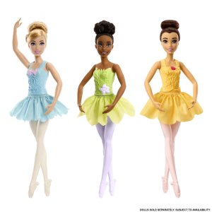 Tato panenka baletka Disney Princess přináší baletní princezny, jako jsou oblíbené Popelka, Bella a princezna Tiana. Každá panenka má upravené vlasy ve stylu baletky, točivou sukni a ruce a nohy v baletních pózách. Panenky se prodávají samostatně dle aktuální nabídky.