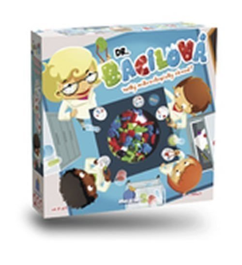 Obsah balení: pravidla, 54 karet zadání, 4 pinzety, 5 Petriho misek, 49 bacilů