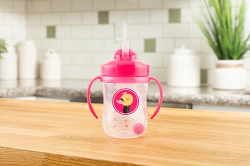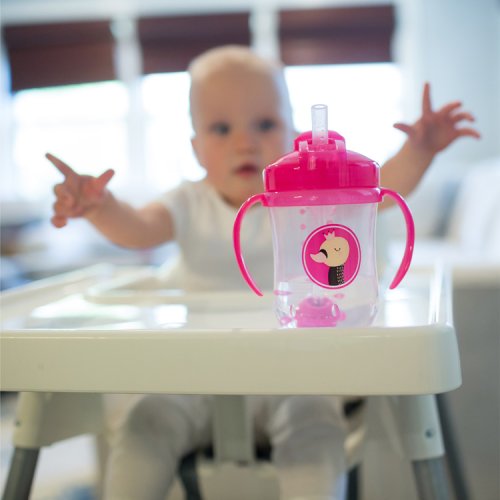 Pomáhá děťátku při přechodu od láhve k hrníčku. Měkké ohebné brčko se závažím umožňuje pít pod jakýmkoli úhlem.