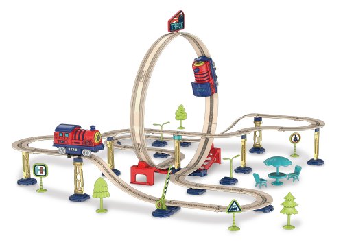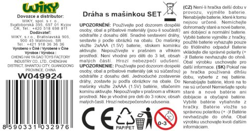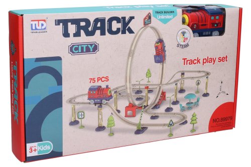 Dráha vlaková se smyčkou. Rozměry dráhy 55x52x36,5 cm. Sada obsahuje 75 dílů. Obsahuje elektrickou mašinku 8,5 cm. Aktivace mašinky stiskem komína. Návod na sestavení na obalu. 2xAAA baterie do mašinky, nejsou součástí.