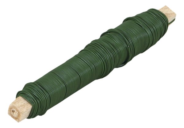 Drát na aranžování květin a výrobu věnců, polakovaný zelený na dřevěném kolíku, váha 100 g.