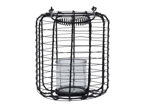 Tato černá drátěná lampa nabízí elegantní design s možností zavěšení. Rozměry 185 × 240 mm ji činí vhodnou pro střední dekorace na stole či poličce. Po zapálení svíčky lampu rozzáří jemné světlo a vytvoří útulnou atmosféru. Kovová konstrukce zajišťuje odolnost a stabilitu, přičemž zachovává lehkost a vzdušný vzhled. Ideální doplněk pro moderní i rustikální interiéry.