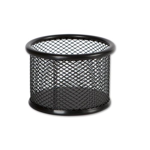Drátěný kalíšek na sponky CONCORDE v černé barvě Kalíšek střední velikosti na kancelářské sponky Praktický doplněk na kancelářský stůl Průměr 9 cm Výška 6,4 cm