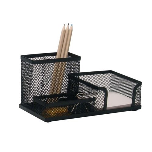Drátěný organizér na pracovní stůl do každé kanceláře 3 oddělené přihrádky na psací potřeby, sponky a poznámkové bločky Barva: černá