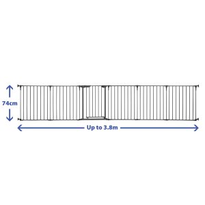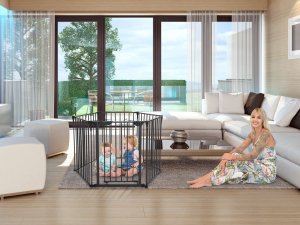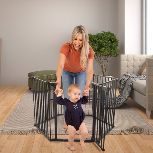 Tento mimořádně univerzální produkt je ideální pro použití jako ohrádka, rozdělovač místností nebo dokonce jako krbová bariéra. Dodává se se 6 modulárními panely včetně pohodlných průchozích vrat. Před připevněním panelů na místo jej můžete snadno nakonfigurovat tak, aby vyhovoval rozložení vašeho domova. Kompaktní design lze složit pro snadné skladování a přenosnost.
