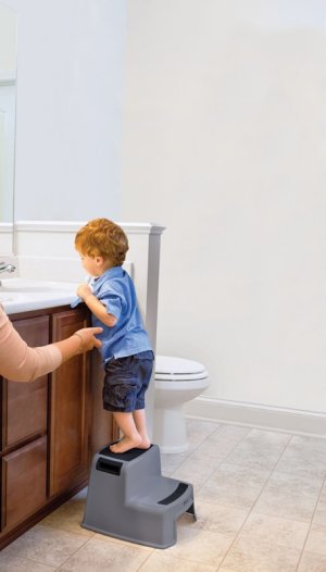 Dvoupatrový stupínek pomáhá vašemu dítěti snadno dosáhnout na toaletu nebo umyvadlo. Díky přilnavé vrchní části je vystoupení ještě bezpečnější a stupínek lze také snadno otřít.