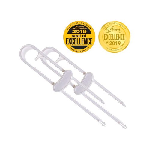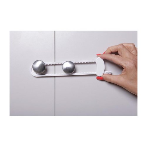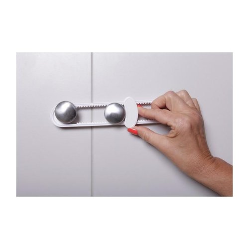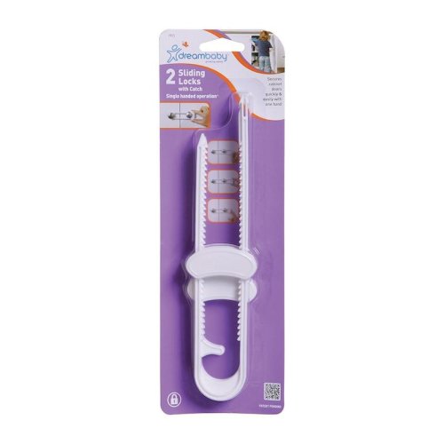 Posuvné zámky Dreambaby © se západkou jsou nejrychlejším a nejbezpečnějším způsobem uzamčení dveří skříněk a pomáhají ochránit malé děti před tím, co je uvnitř. Jsou vhodné pro kliky ve tvaru D, nevyžadují žádnou instalaci a lze je otevřít jednoduchým jednoručním manévrem. Jednoduše zatlačte dolů a pevně zasuňte zámek proti rukojetím.