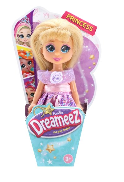 Dreameez mini princezna v kornoutku je roztomilá panenka o velikosti cca 12 cm, oblečená v princeznovském oblečení. Má dlouhé vlásky, které si mohou děti česat a upravovat, což přináší spoustu zábavy při hraní na pohádkové příběhy.
