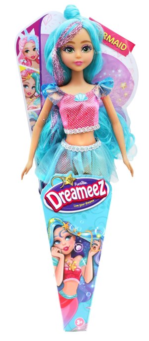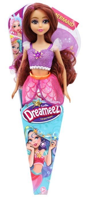 Popis: Dreameez mořská panna v kornoutku je panenka o velikosti přibližně 29 cm. Má dlouhé, lesklé vlasy, které se dají snadno česat a upravovat, a je oblečená v nádherném mořském kostýmu, který je plný detailů a třpytek. Kornoutek, ve kterém je panenka uložena, je barevný a dekorativní, což přidává na celkovém kouzlu. Tato panenka je ideální pro všechny malé dobrodružky, které si chtějí hrát na mořské panny a prožívat příběhy z podmořského světa.