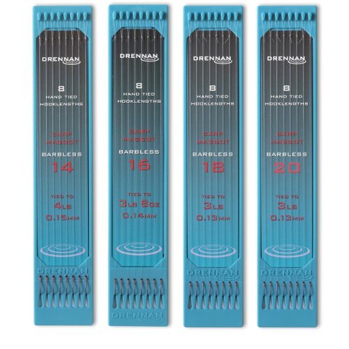 Háček č. 14 – 0,15 mm – nosnost 1,81 kg – délka 15 cm Háček č. 16 – 0,14 mm – nosnost 1,59 kg – délka 15 cm Háček č. 18 – 0,13 mm – nosnost 1,36 kg – délka 15 cm Háček č. 20 – 0,13 mm – nosnost 1,36 kg – délka 15 cm